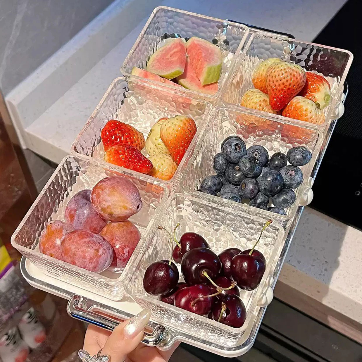 - Bộ gồm 6 ngăn rời nhau, dễ dàng bày mứt kẹo, hoa quả và vệ sinh sau khi sử dụng.